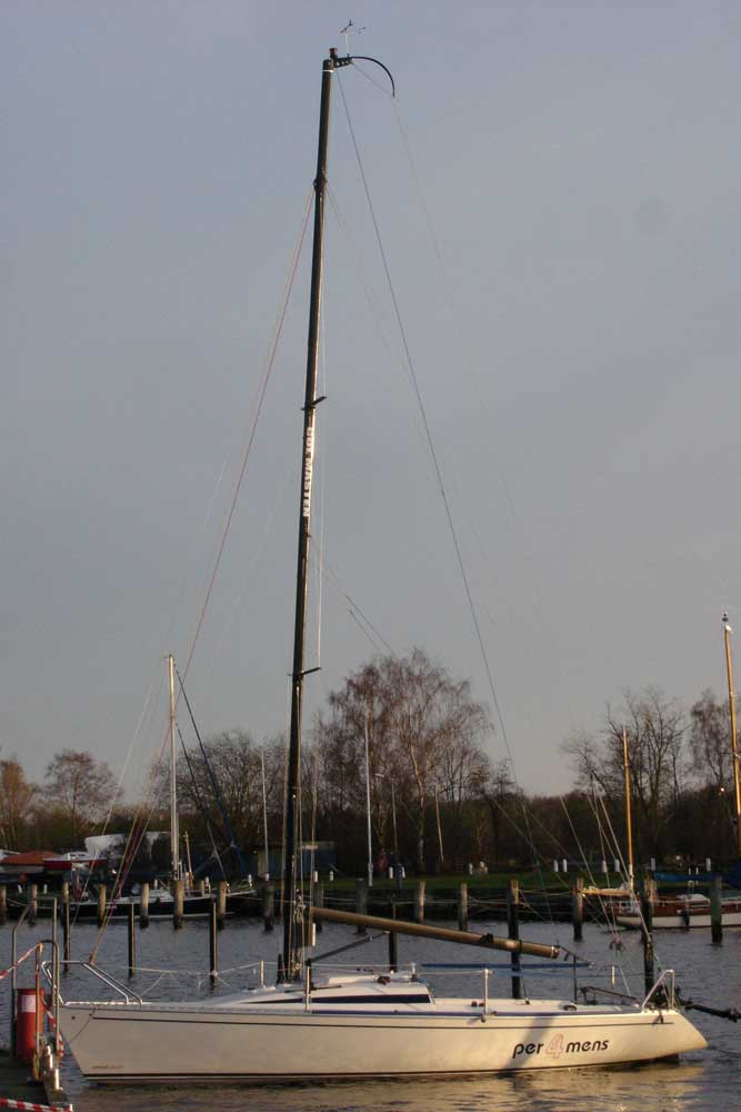 „Unsere Dynamic 2000 erhielt im Winter 2009/2010 ein neues Komplettrigg von CUL-Masten. Bei gleicher Gesamtlänge wurde der Vorstagsansatzpunkt in Richtung 9/10 Takelung nach oben und das Vorstag ca 30 cm nach vorne versetzt. Das Boot erhielt ein Square-Top Großsegel und ein schlankes Vorsegel. Dank der nicht gepfeilten Salinge und den beiden Backstagen, ließ sich das Rigg sehr gut Trimmen. Im Winter 2013/2014 kam noch ein Code 0 nebst kurzem Kohle-Carbon-Rüssel dazu. Bis zum Verkauf 2015 haben wir ohne Probleme viele Wind- und Wellenreiche Meilen im Regattaeinsatz in der Lübecker Bucht gesegelt.“