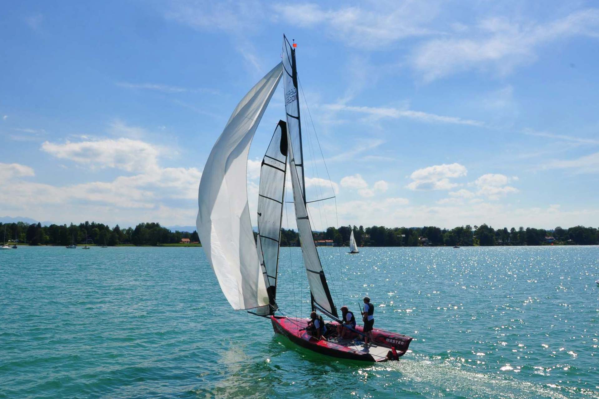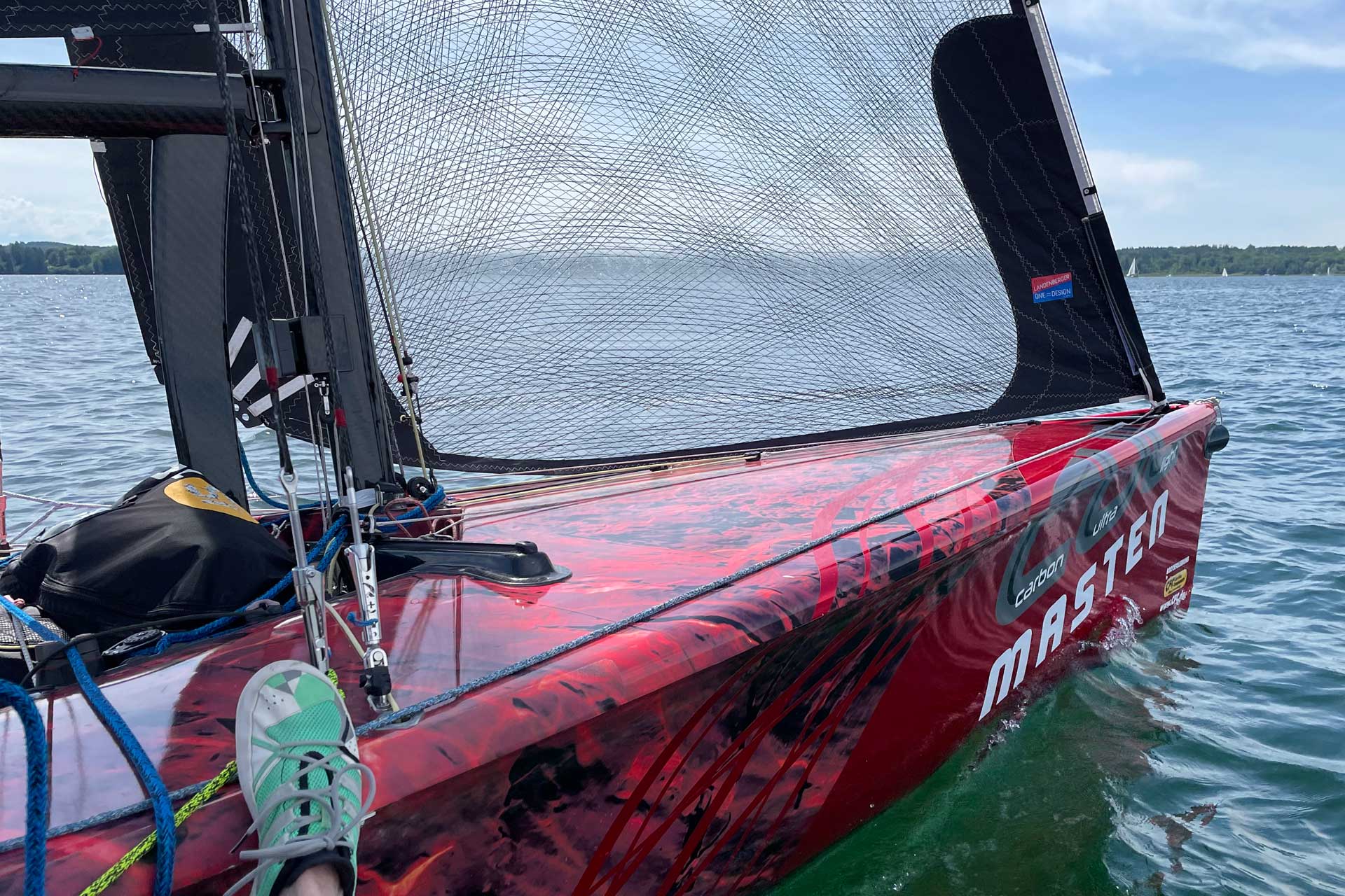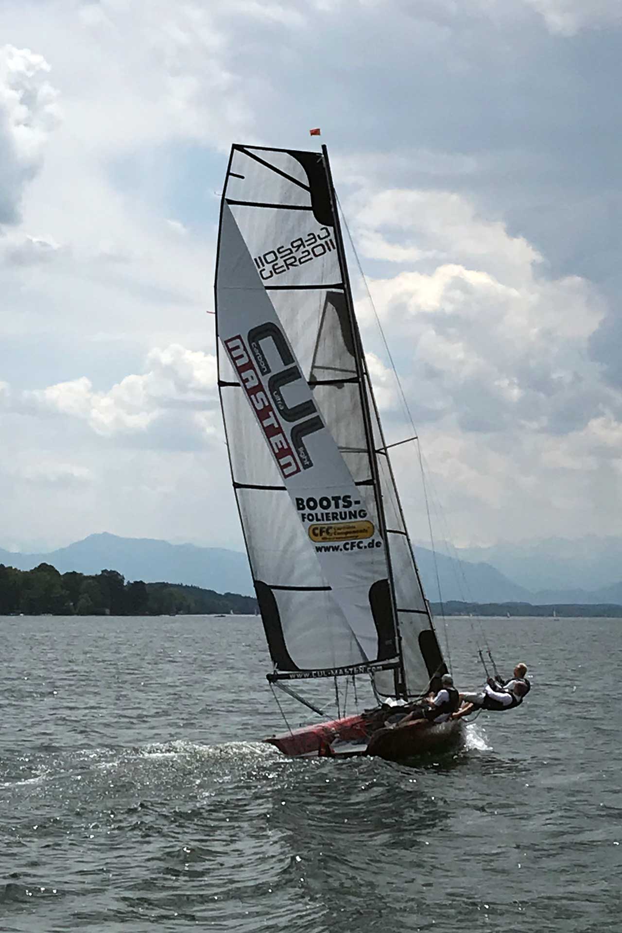 Sail area | Großsegel: 23,8 qm Fock: 14 qm Gennaker: 56 qm A0: Gennaker 36 qm |